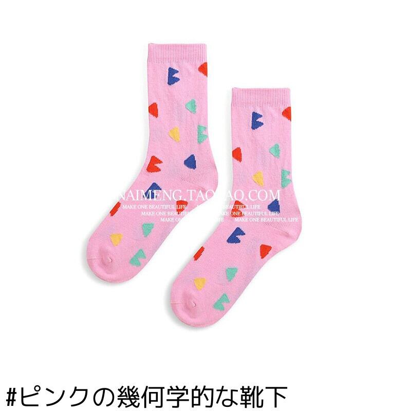 色:赤と青のカラーブロックソックス,ベージュヒルソックス,ピンクの幾何学的な靴下,青い花の靴下,オフホワイトの幾何学的な靴下