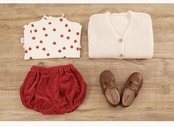 色:ホワイトニットジャケットスポット,赤いコーデュロイショーツスポット,Xiaohongguoボトミングシャツスポット,小さな花柄のボトミングシャツスポット,餅110/18KGコートトップ110花芽パンツ100ヤード
