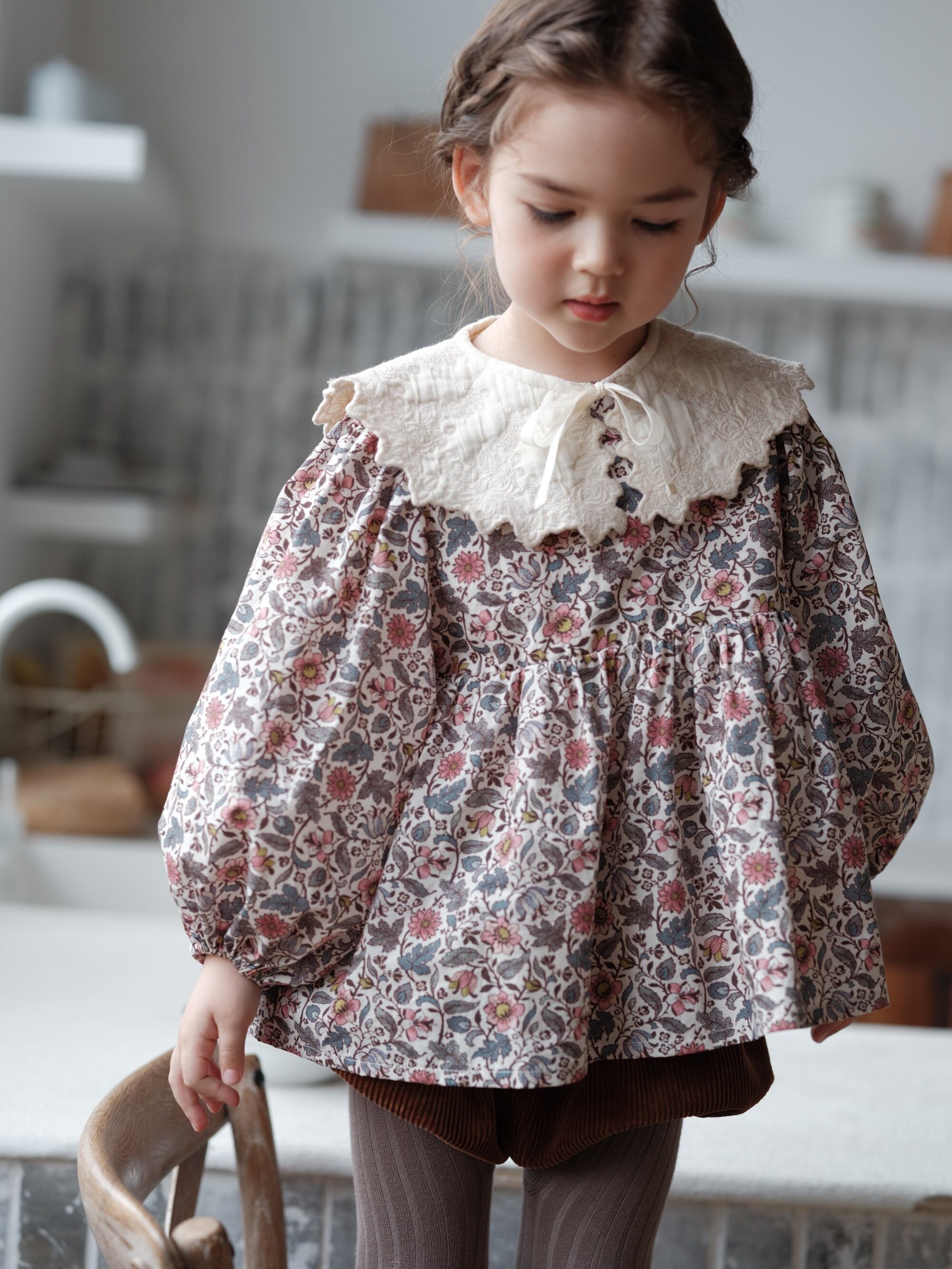 スリーブフローラルシャツ オータムウィンタースタンダードFlowerデザイン パンツ ランタンスリーブ コットン レトロ 秋物 冬物 花柄 フラワーデザイン 3/14 春夏 SS mi5367768586390