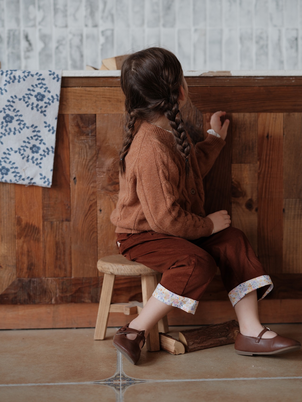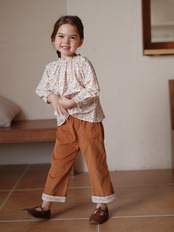 スタンダードコーデュロイフローラルカラー薄手パンツ コットン レトロ 花柄 3/14 春夏 SS mi5371782009875