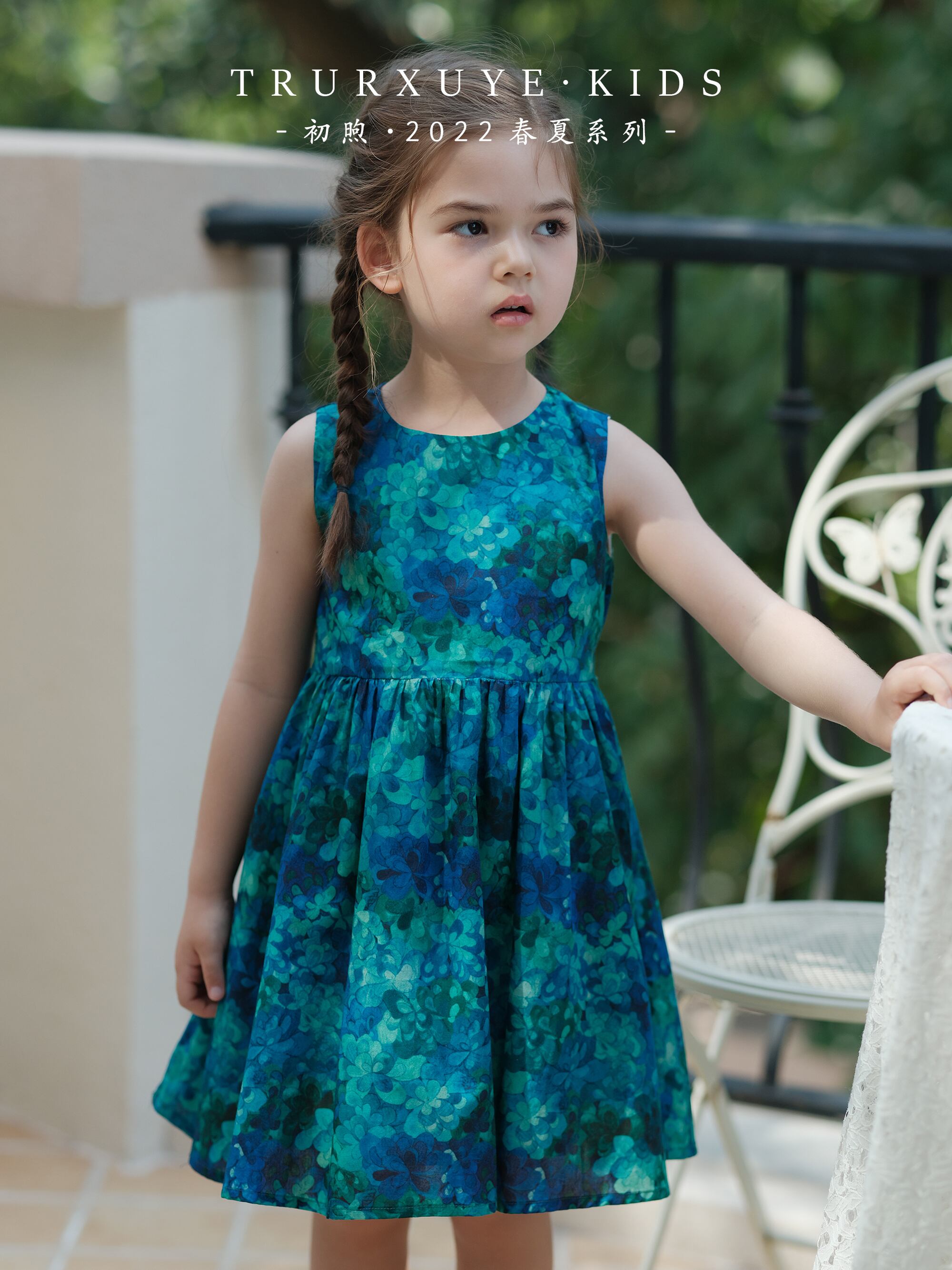 サマーブルーフローラルスカート ノースリーブドレス コットン 夏物 花柄 3/14 春夏 SS mi53969757396
