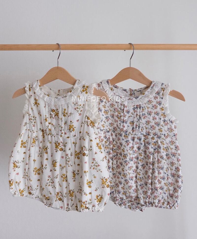 サマーロンパース オールインワン ノースリーブフローラルレースジャンプスーツ オールインワン ワンピースオーバーオール コットン 夏物 花柄 4/12 春夏 SS 子供服 韓国風 mi5381044651601