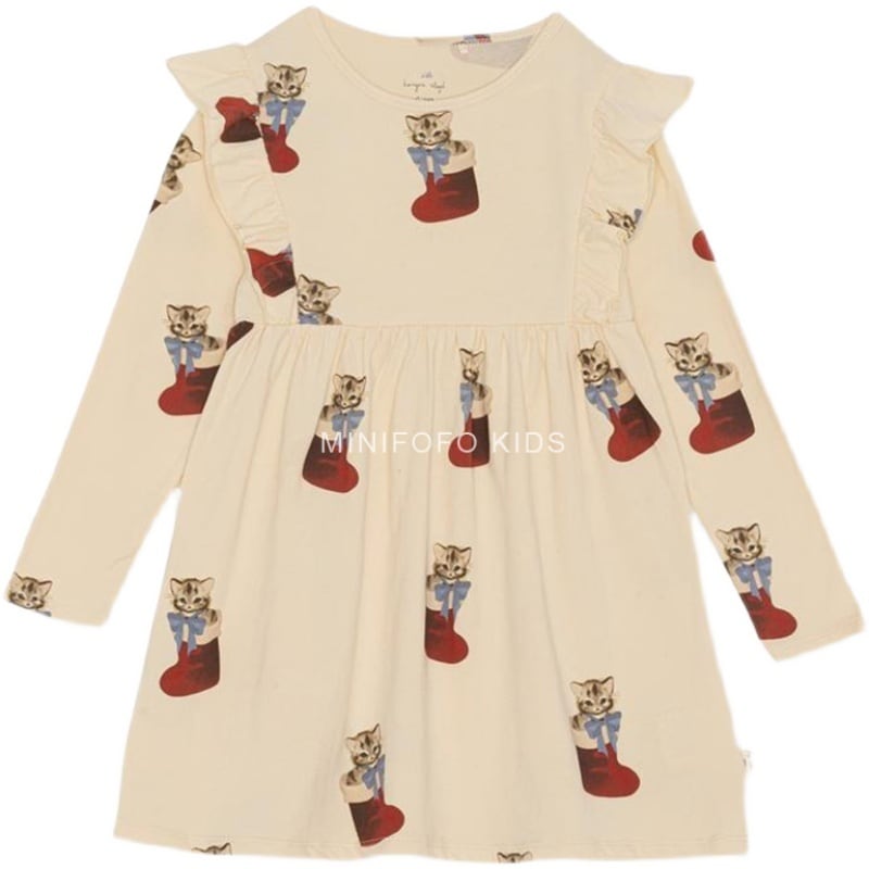 色:サンタドレス,猫のドレス,クリスマスの花柄のドレス