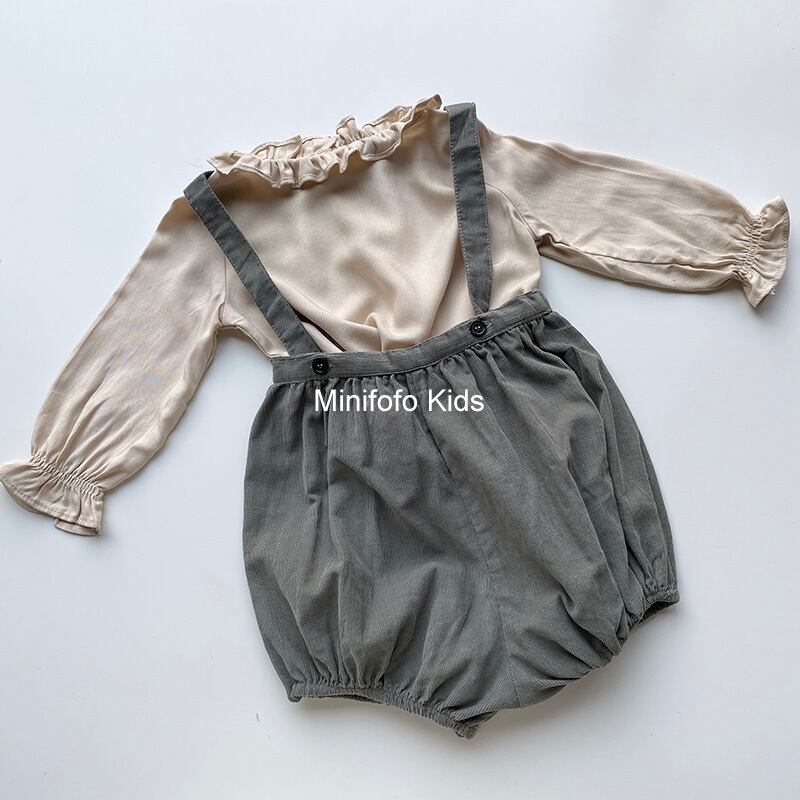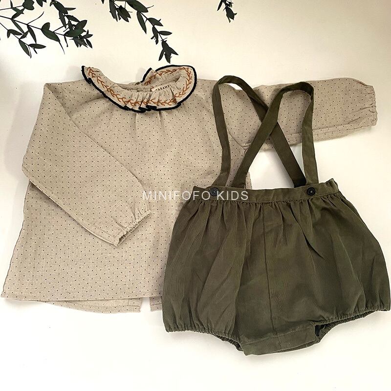 フローラルレースシャツ コーデュロイオーバーオール 花柄 4/12 春夏 SS 子供服 韓国風 mi5371246838791