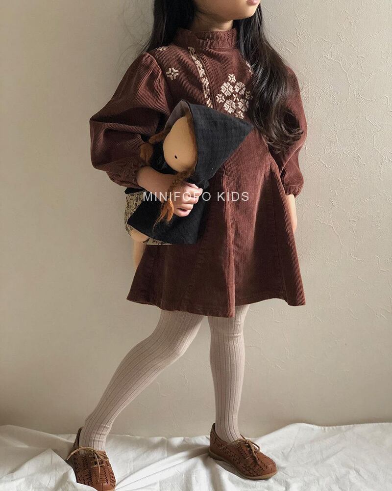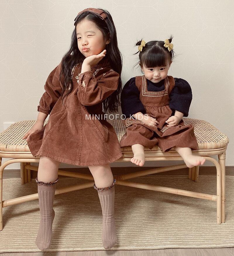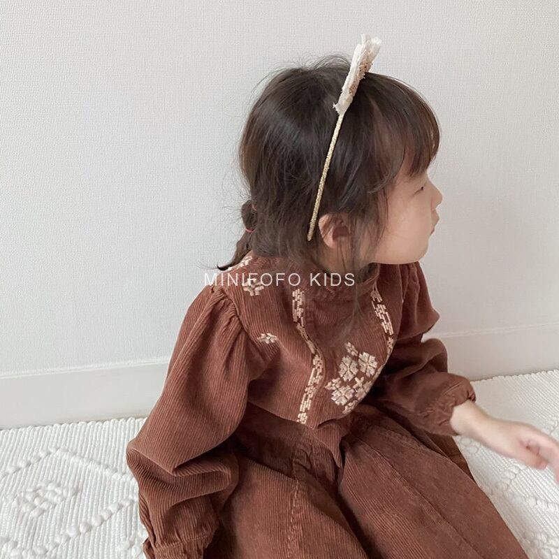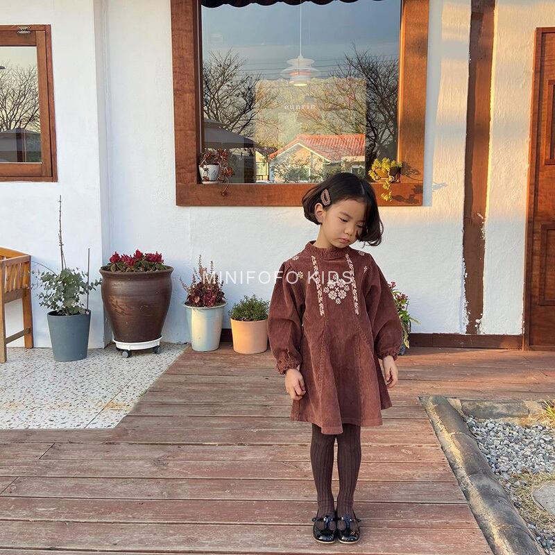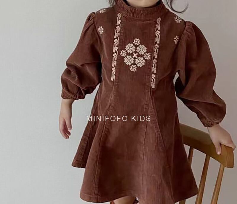 オータムスタンダード刺繍ドレス コーデュロイスカート ロング レトロ 秋物 4/12 春夏 SS 子供服 韓国風 mi5353329623533