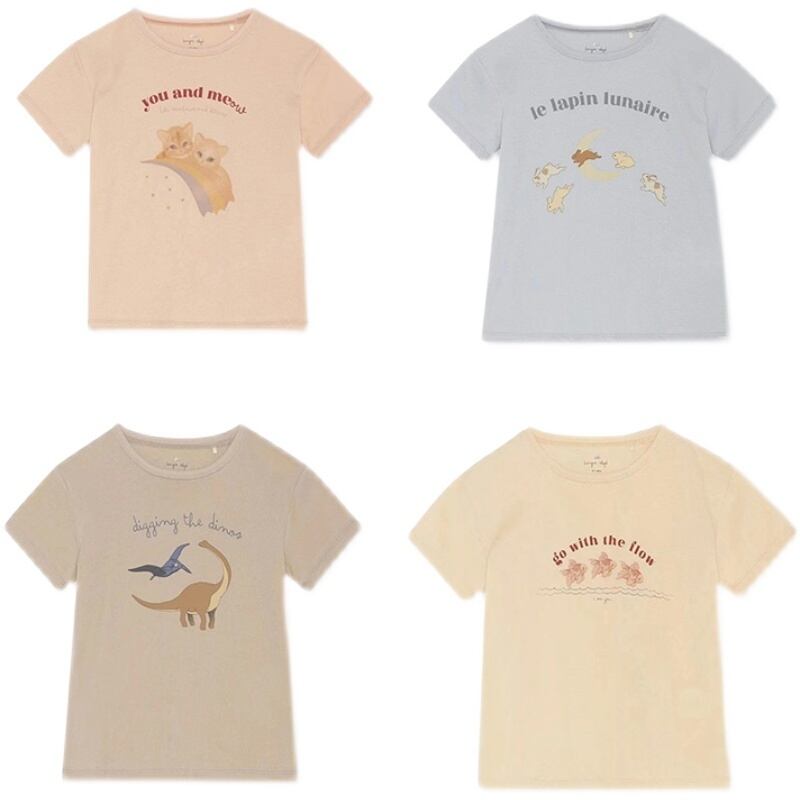 色:アプリコット恐竜半袖Tシャツスポット,ブルームーンラビット半袖Tシャツスポット,グレーピンクニャー半袖Tシャツスポット,クリームイエローの金魚半袖Tシャツスポット