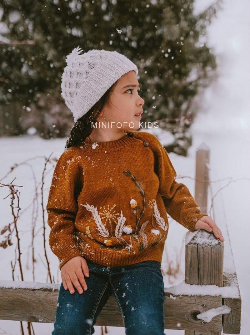 オータムウィンターラウンドネックプルオーバー セーター レッド 刺繍 秋物 冬物 Oネック 4/12 春夏 SS 子供服 韓国風 mi5378115854640