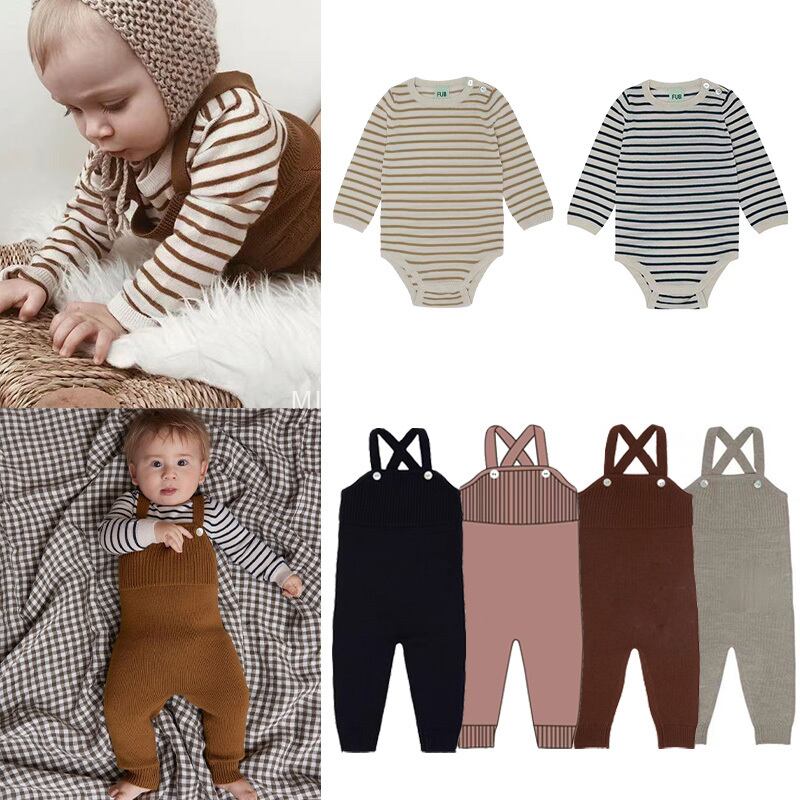 ウールストライプニットロンパース オールインワン ハイウェストオーバーオール ロング 4/12 春夏 SS 子供服 韓国風 mi5326745961590