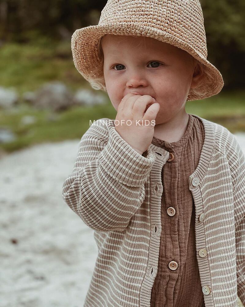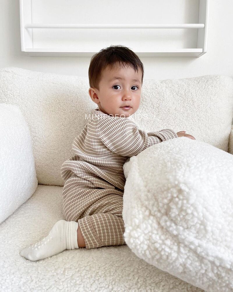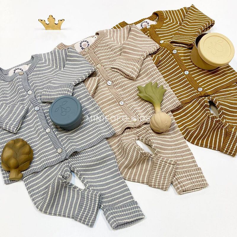オータムウィンターストライプニットトップス パンツ カーディガンセーター セット 秋物 冬物 4/12 春夏 SS 子供服 韓国風 mi5356148579157