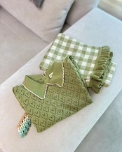色:グリーンチェック柄ニットスリップトップ,グリーンチェック柄ニットレース7点パンツ,プレセールプレセールプレセール