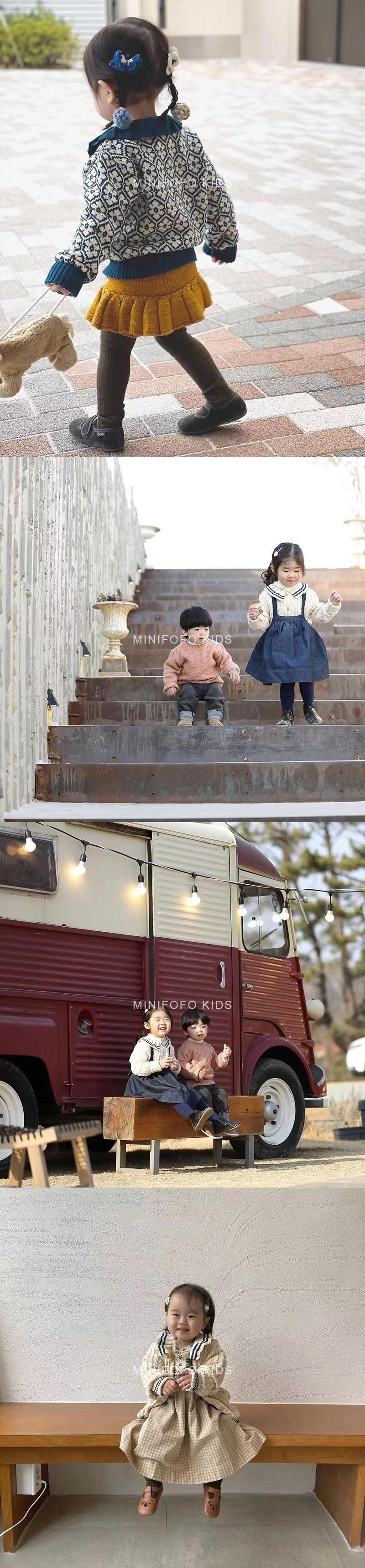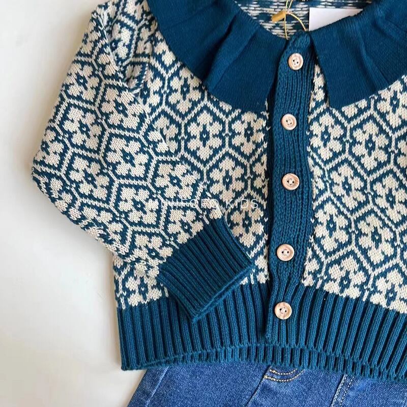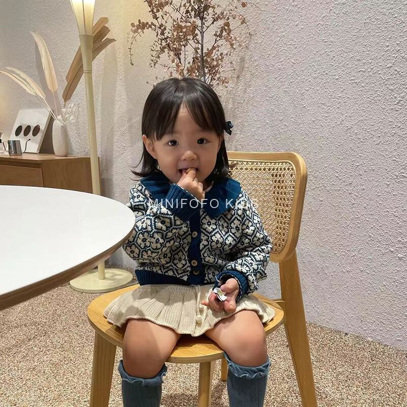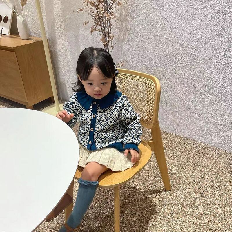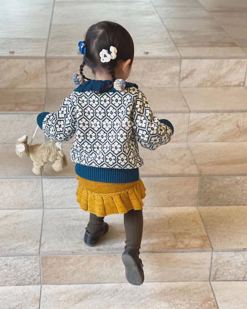 スタンダードジャカードニットカーディガンプリーツレースカラートップス スプリングオータムコート レトロ 春物 秋物 4/12 春夏 SS 子供服 韓国風 mi5360592355830
