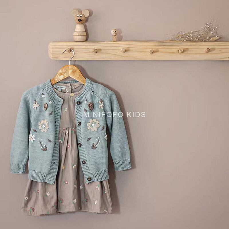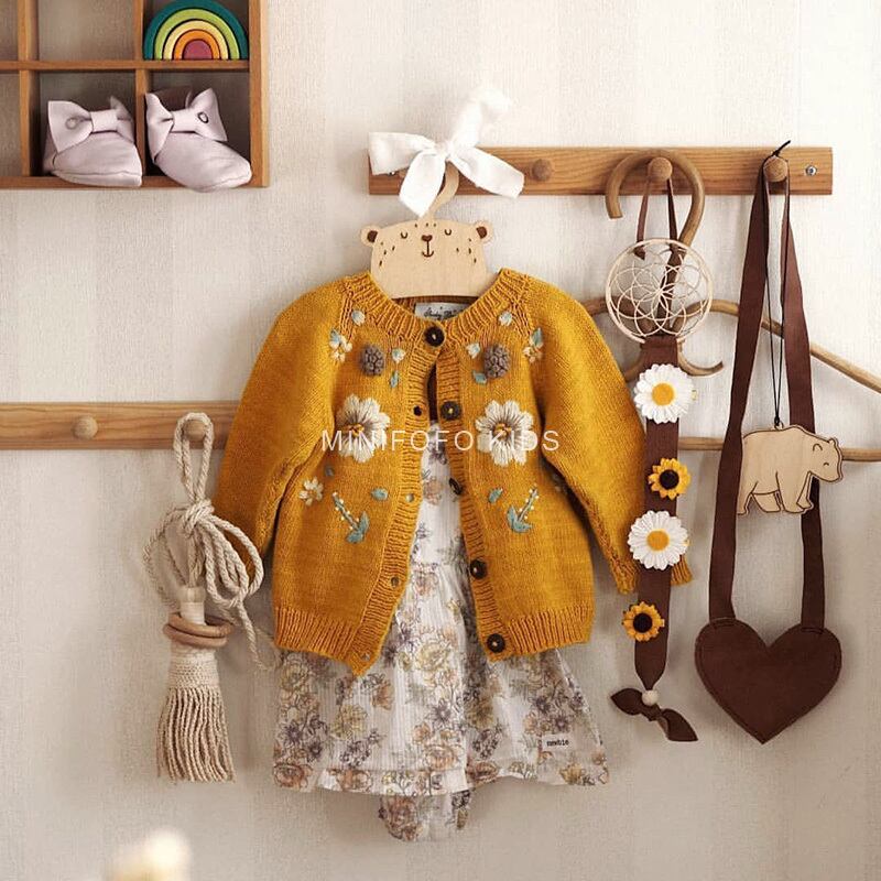 オータムウィンターニットカーディガンFlowerデザイン セーター レッド 刺繍 秋物 冬物 フラワーデザイン 4/12 春夏 SS 子供服 韓国風 mi5341970990171