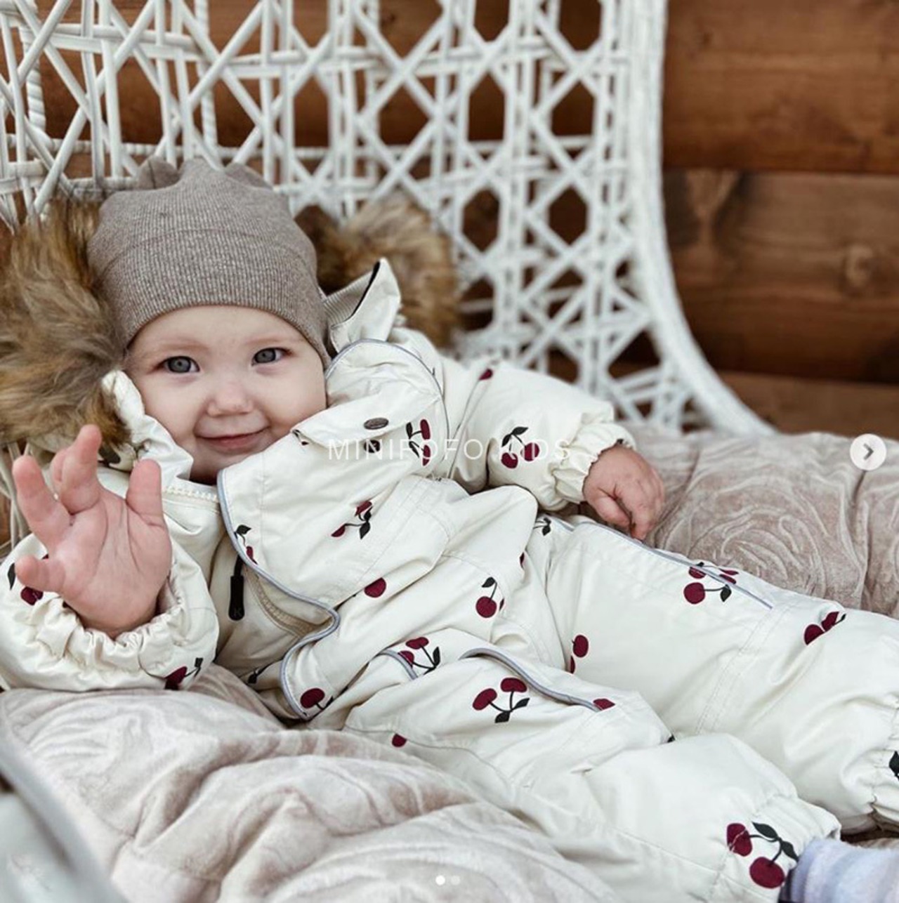 色:ファーカラーの小さなチェリーワンピース,毛皮の襟付きの小さなチェリーコートが大きすぎます