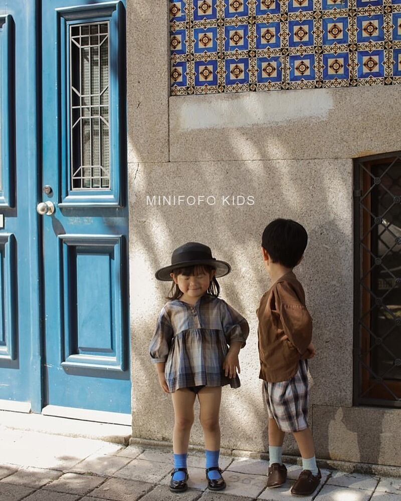 オータムシャツ スタンダード格子柄スリーブトップス ショーツ コットン レトロ 大人ガーリー スウィート キュート カジュアル 秋物 ブルマー 4/12 春夏 SS 子供服 韓国風 mi5398531829374