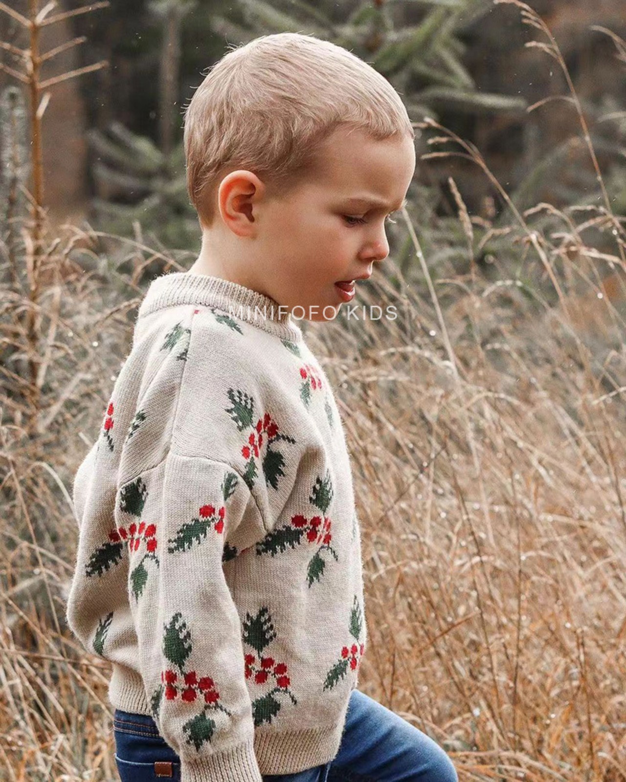 色:クリスマスの花柄のセーター,どんぐりセーター