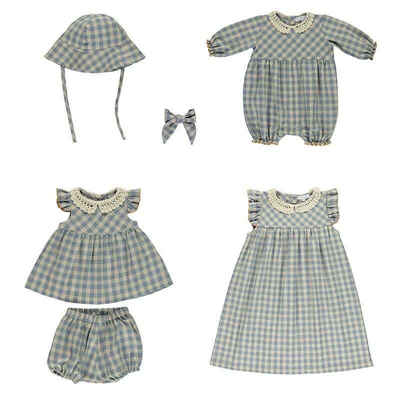 格子柄スリーブジャンプスーツ オールインワン ロンパース オールインワン コットン 大人ガーリー スウィート キュート カジュアル 4/12 春夏 SS 子供服 韓国風 mi5325903628734